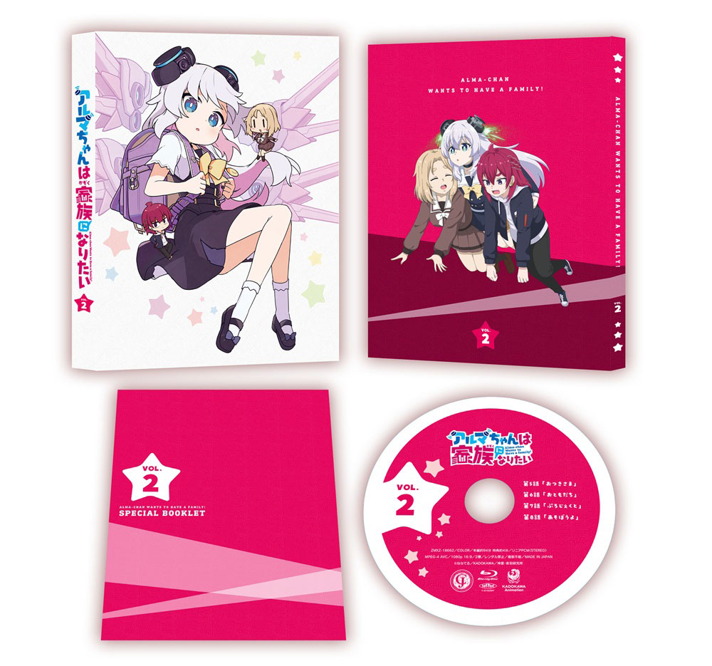 商品情報 アルマちゃんは家族になりたい Vol.2【Blu-ray】 2026年1月28日(水)発売 品番 ZMXZ-18662 価格 14,300円(税抜価格13,000円) 収録内容 第5話~第8話 初回生産特典 ①原作・ななてる描き下ろしBOX ②アニメ描き下ろしデジパック ③原作・ななてる描き下ろしコミックス収録 特製ブックレット 毎回特典 PV集 商品仕様・価格などは予告なく変更になる場合がございます。